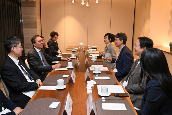 林定國上午到訪大韓商事仲裁院國際仲裁中心,與中心主席張勝和會面,並連同韓國國際仲裁委員會代表共進午餐,討論推進香港與韓國在跨境商事爭議解決和仲裁的合作,又探討加強兩地在法律事務上的交流合作。