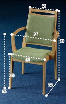- 尺寸: 寬度547mm, 深度585mm, 高度830mm, 座椅高度420mm, 扶手高 - 度605mm