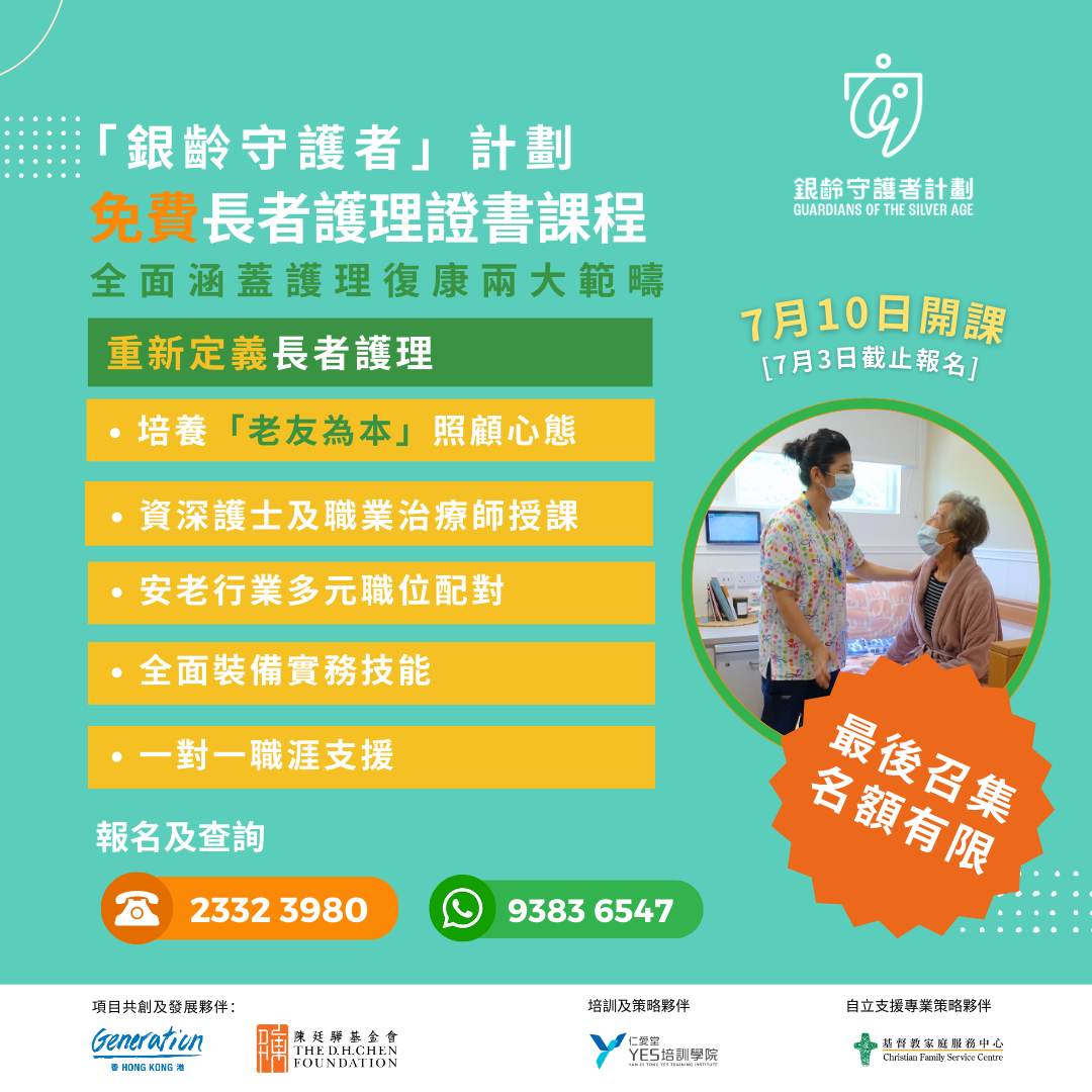 「銀齡守護者」計劃 免費長者護理課程 最後召集