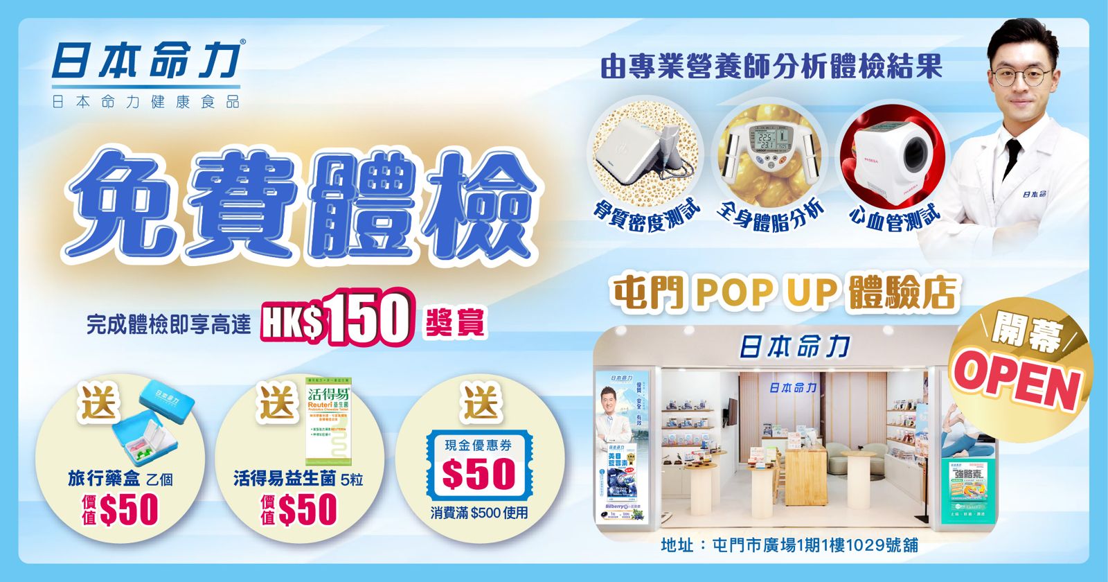 日本命力一直重視與社區的連繫,藉著屯門Pop-up體驗店開幕,特別推出【免費營養師體檢服務】回饋社區: