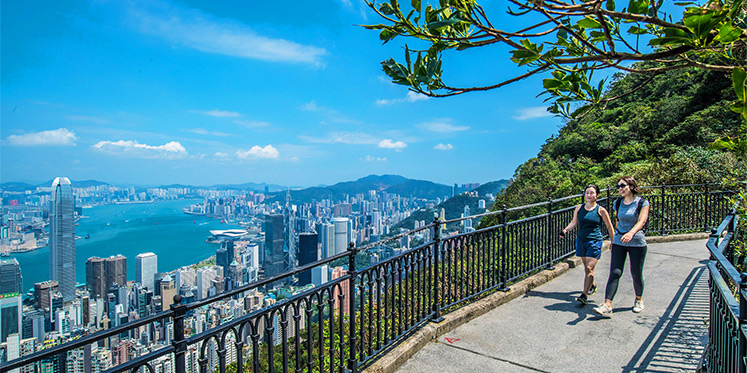從摩天高樓、繁華街道,到海邊峭崖和連綿山巒 —— 車水馬龍的城市景觀與秀美如畫的自然風光在香港和諧共存,是這個城市的一大特色。想親身感受?踏上山頂環迴步行徑(包括盧吉道和夏力道)吧!儘管一路上叢林茂密,但其實這條步行徑路程短、地勢平緩,且全程都有水泥鋪地,就算推著嬰兒車行走也很方便。你可以一路走走停停、賞景拍照;但如果時間有限,一個小時其實就能走完。乘坐公車或計程車能輕鬆抵達步行徑的起點,也可以選擇搭乘山頂纜車,並花半天時間遊覽太平山頂。