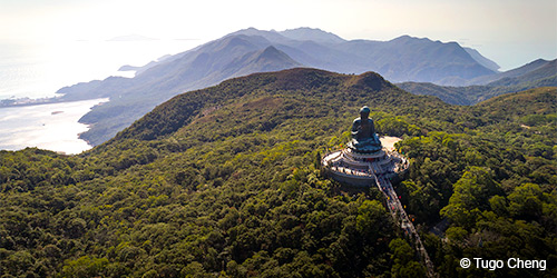從昂坪廣場出發,不遠處就是寶蓮禪寺和天壇大佛。禪寺始於1906年,在這座有百年歷史的名剎,你可以禮佛和享用齋菜,亦可以細心欣賞大雄寶殿、天王大殿、鐘樓和鼓樓等佛教建築。而坐落於木魚峰上的天壇大佛,面相、衣紋和頭飾分別參照龍門石窟和敦煌石窟的佛像建造,宏偉壯觀。