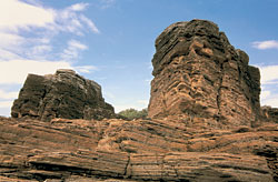 在小島東南端的海蝕平台上,有兩座約七至八米高、形狀獨特的海蝕柱。這些岩石經過長期的海浪侵蝕和風吹雨打,形成獨特的形狀,而在兩座垂直的岩柱上都可尋找到頁巖的節理。